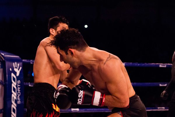 Nein. Die Griechen, genau wie der Chinese bei meinem letzten Kampf, legen nicht viel Wert darauf, bei YouTube oder Facebook etwas hochzuladen. Sie kämpfen viel im eigenen Land. Er hatte in 2015 um die Weltmeisterschaft gekämpft, aber musste wegen einer Verletzung am Knie den Kampf abbrechen. Er hat viel Ausdauer, kämpft MMA, Kickboxen/K1 und bei seinem MMA-Kampf sieht man, dass er 3×5 Minuten nur vorwärts geht. Also Luft und Ausdauer hat er.