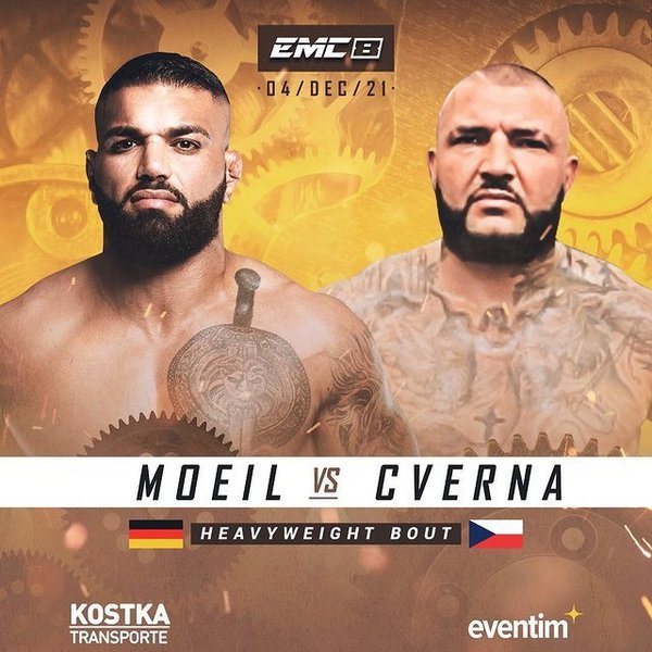 Zuvor steigt eins der besten Schwergewichte Deutschlands in den Käfig. Der „Boss“ Hatef Moeil (10-4) wird sich mit Alexandr Cverna messen. Der Fighter vom UFD konnte zuletzt sechs Duelle in Folge für sich entscheiden. Dabei standen dem Deutsch-Iraner Athleten wie Björn Schmiedeberg, Ex-UFC Champion Ricco Rodriguez oder James McSweeney vor den Fäusten, die er allesamt abfertigte. Der Hüne aus Köln sollte 2021 zweimal in Aktion sein und bei PFL an den Start gehen, doch Visa-Probleme verhinderten die Auftritte in den USA. Frei nach dem Motto „aller guten Dinge sind drei“ wird der 34-Jährige nun bei EMC die Fäuste fliegen lassen.