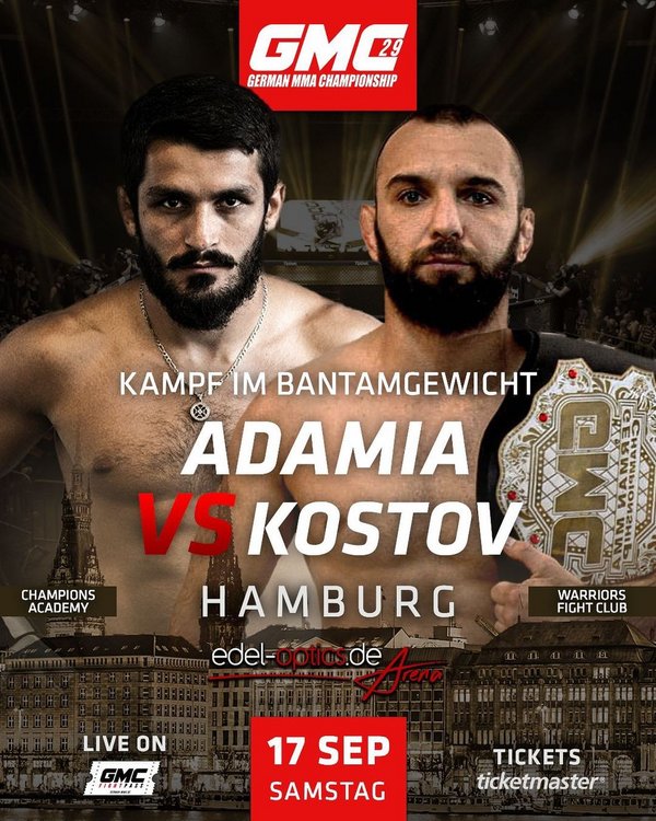 It’s Crunch Time für GMC. Die 29. Ausgabe der renommierten MMA-Organisation steht in den Startlöchern, um am 17. September in der Edel-Optics Arena von Hamburg für Furore zu sorgen. Bei der GMC-Rückkehr in die Hansestadt werden im Hauptkampf des Abends Khalid „Willi“ Ott und Alexander Wesner den Interims-Titel im Mittelgewicht unter sich ausmachen. Im Co-Main Event steht Fliegengewichts-Champion Dimitar Kostov dann Beno Adamia gegenüber.