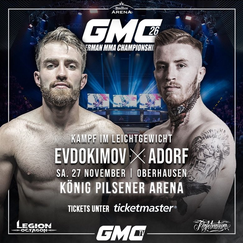 Jetzt will er in seinem ersten Fight für GMC auch „Posterboy“ Maurice Adorf bezwingen, um zu zeigen, dass er der neue Platzhirsch im Federgewicht ist. Mit Headcoach Peter Sobotta im Ohr, wird Evdokimov am 27. November seinen Gameplan ausspielen wollen, um den bisher größten Sieg seiner noch jungen Karriere einzufahren.