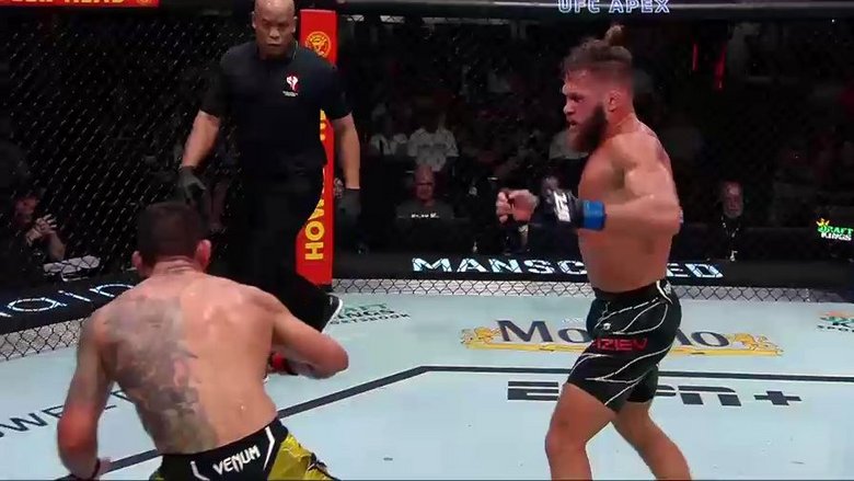 „Ataman“ Fiziev erwischte den Brasilianer mit einem linken Haken am Kinn, der ihn zu Boden krachen ließ. Der Mann aus Kirgistan brachte noch zwei Folgeschläge in Ziel, bevor Referee Mark Smith eingriff und den Kampf nach 0:18 Minuten in der 5. Runde stoppte.